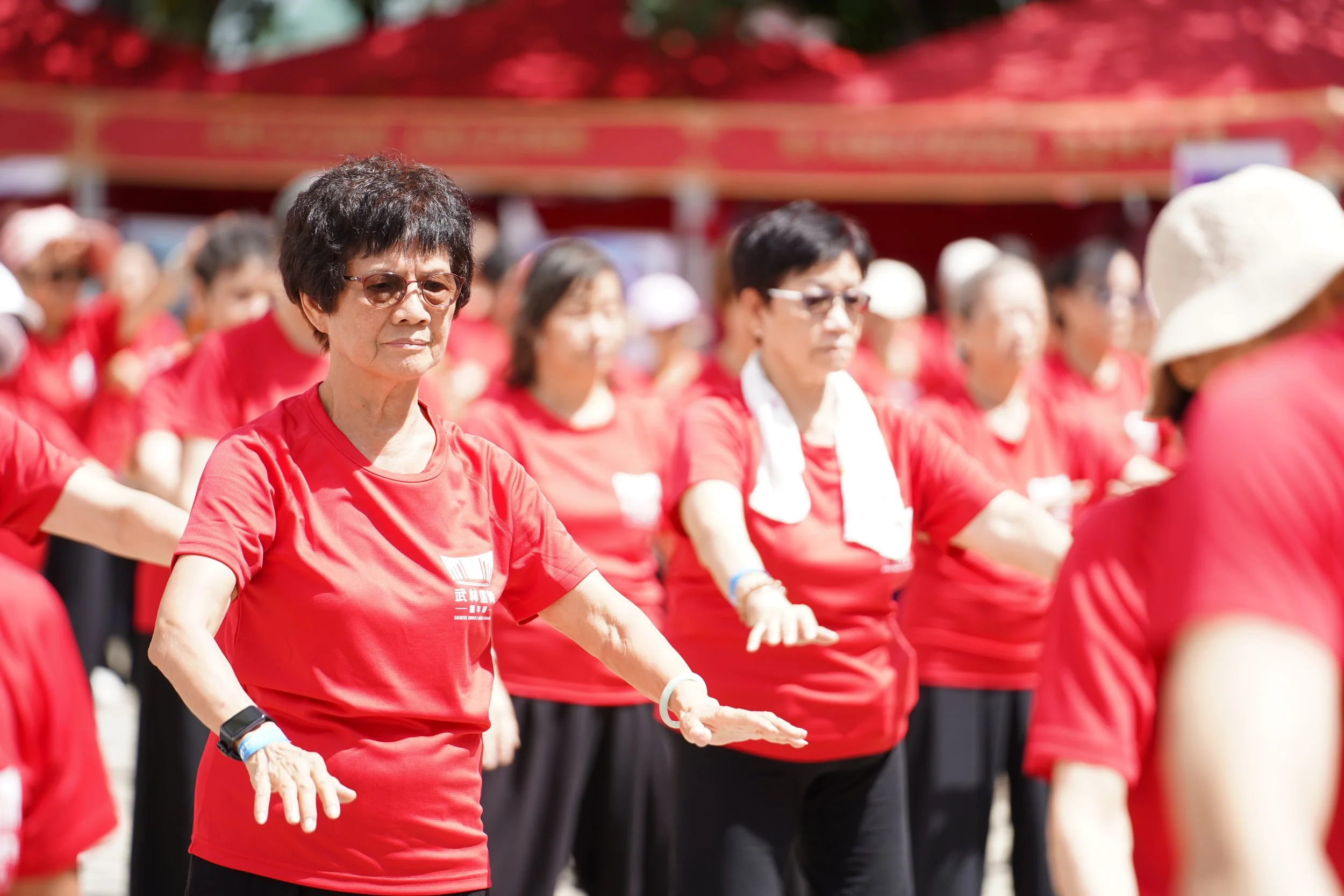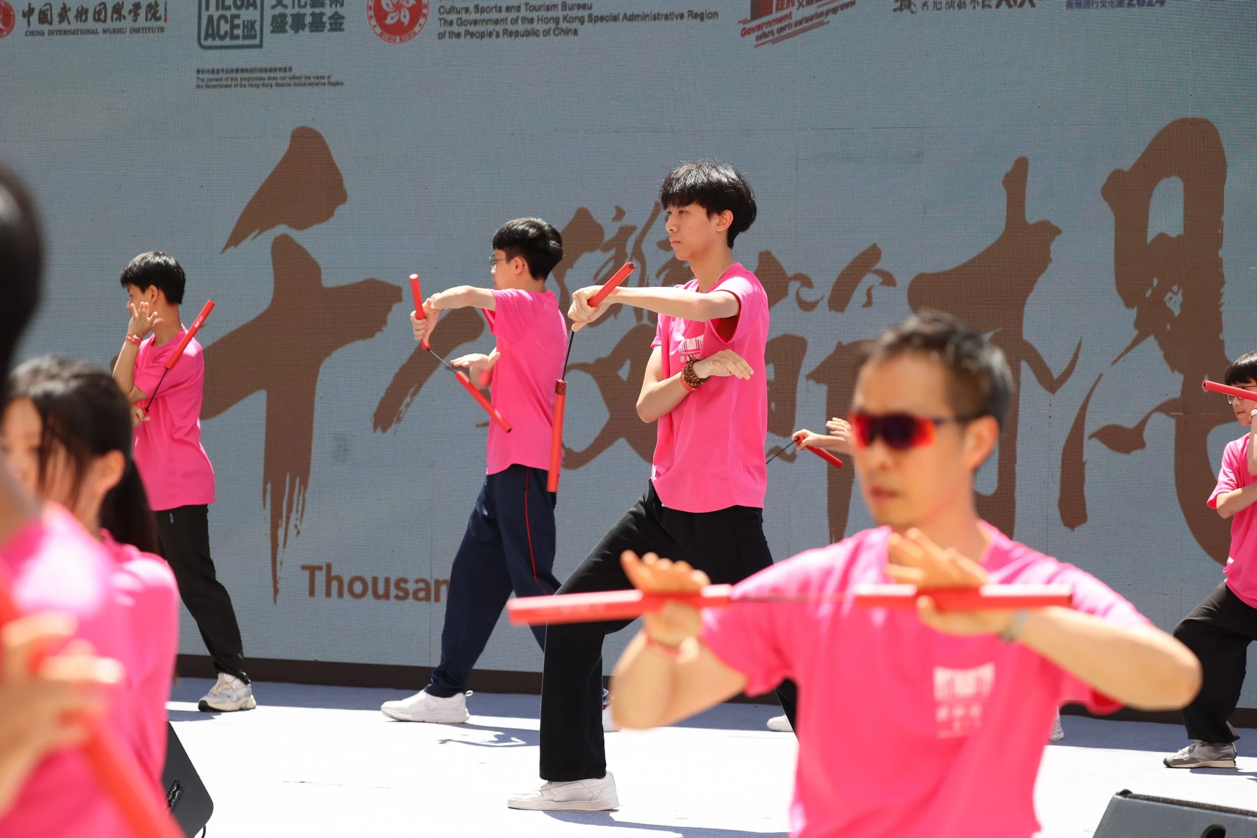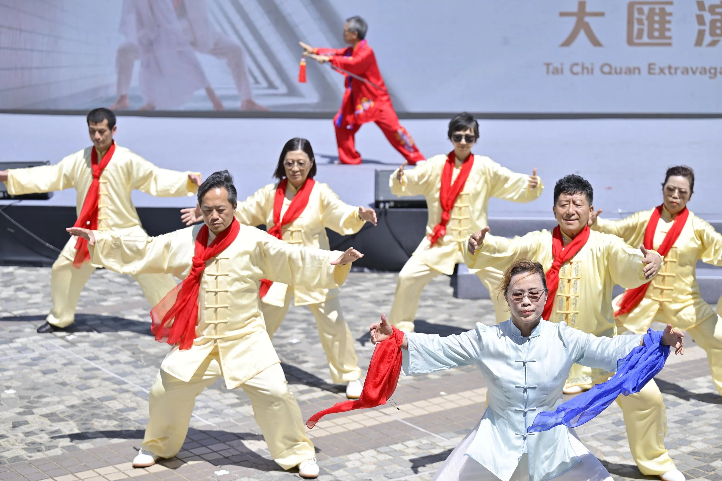 「千人太極拳」老中青表演者,展示以和為貴的太極文化,帶出社會和諧共融的信息。太極拳表演者來自23個香港太極團體,其中台前表演精英不乏香港知名太極拳師傅。
