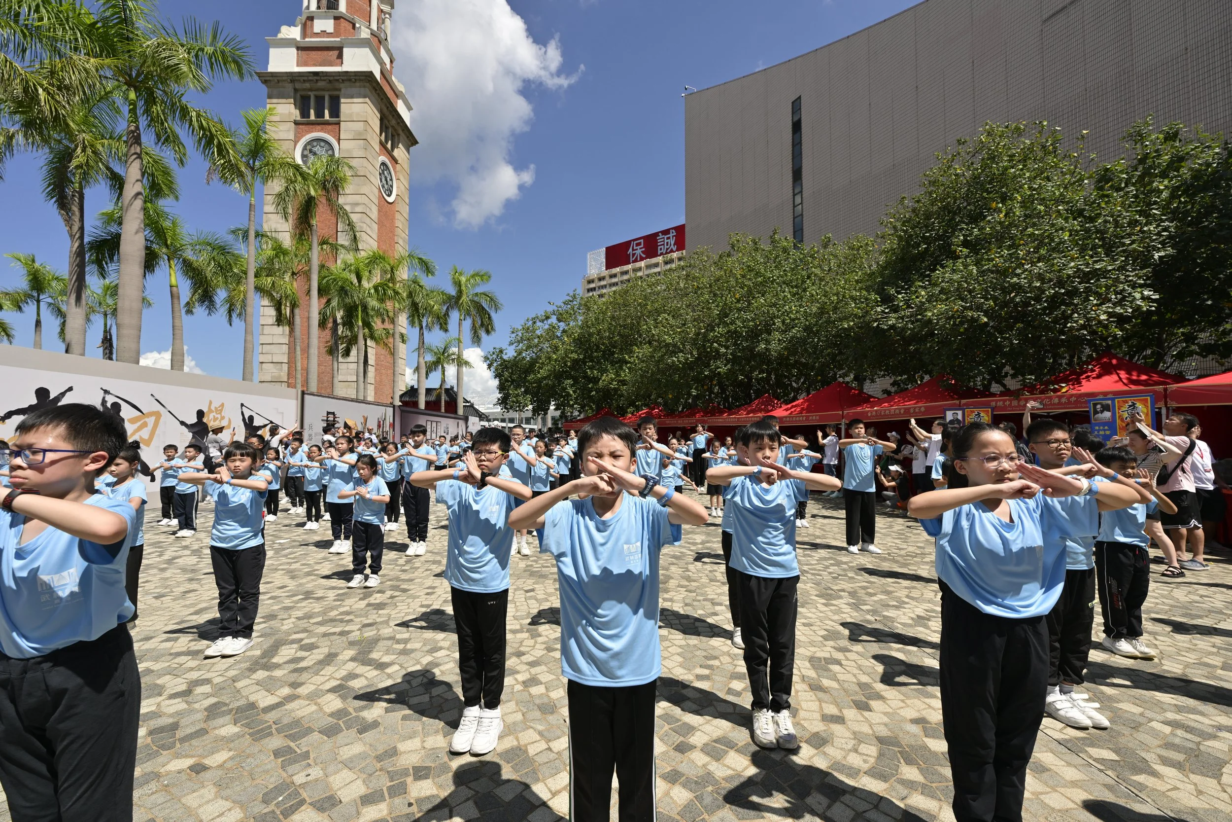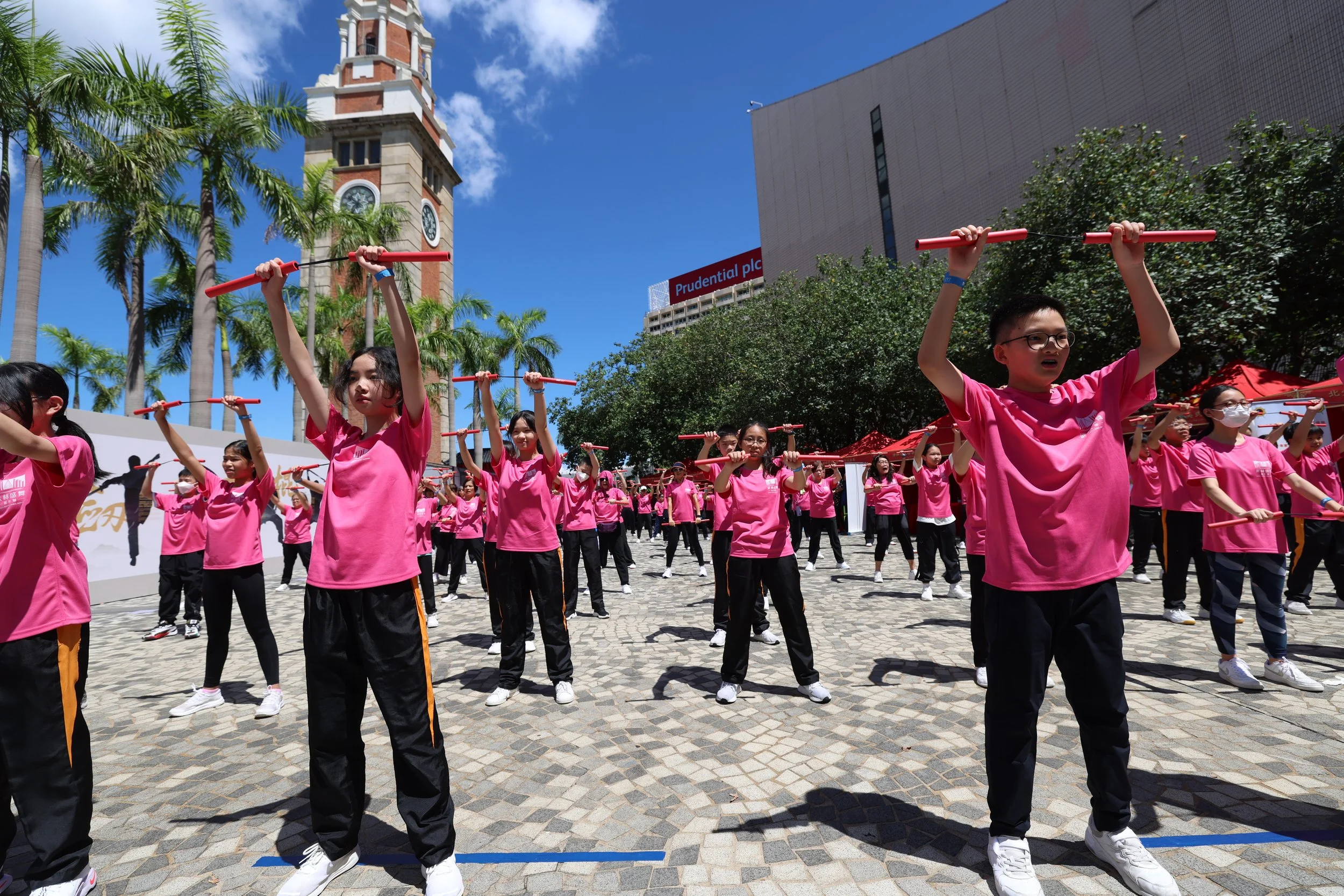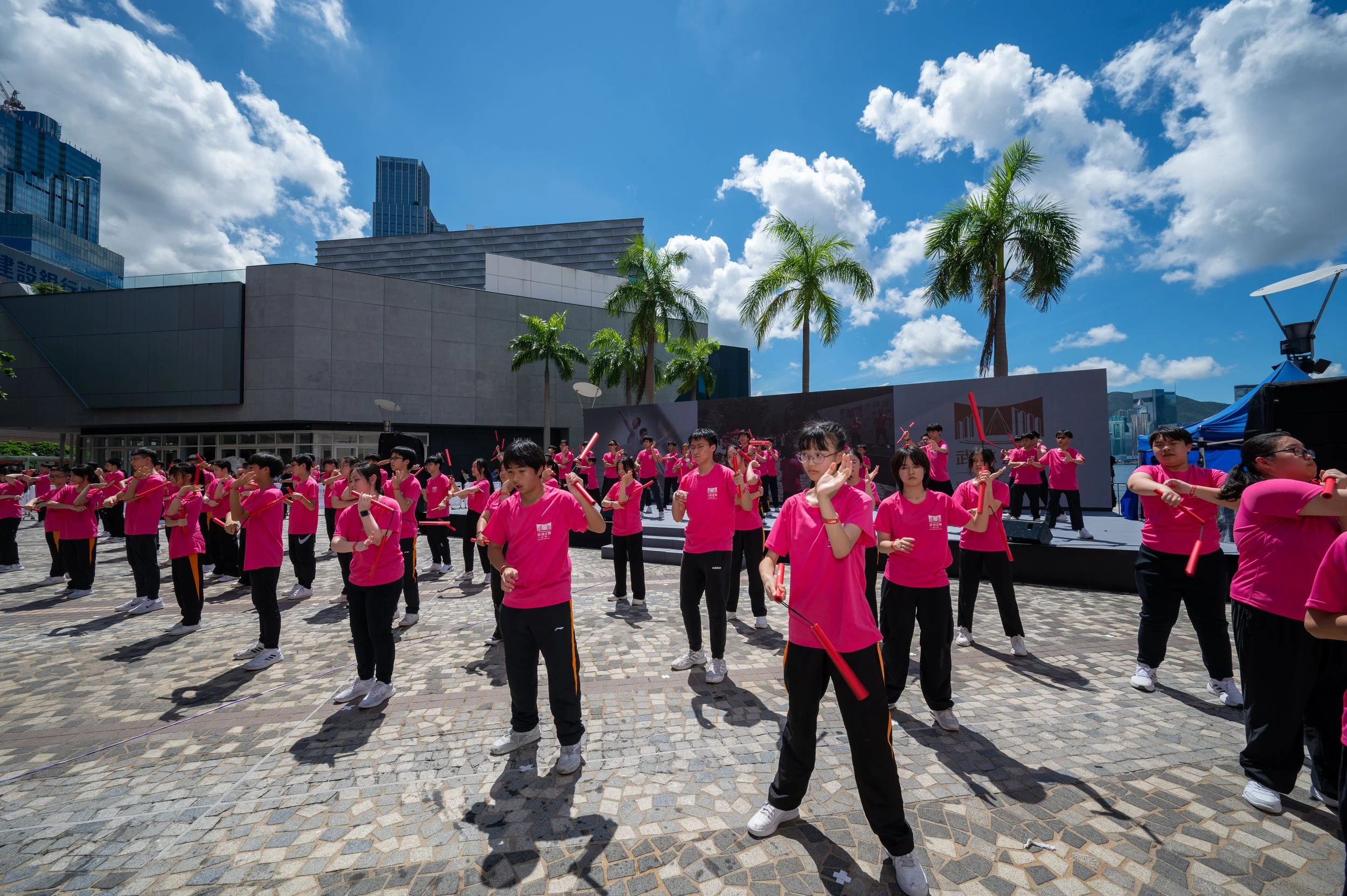 由香港青少年參與大匯演。雙節棍表演者來自共14個團體,包括少年警訊、耆老警訊、學校及武術體育會等。