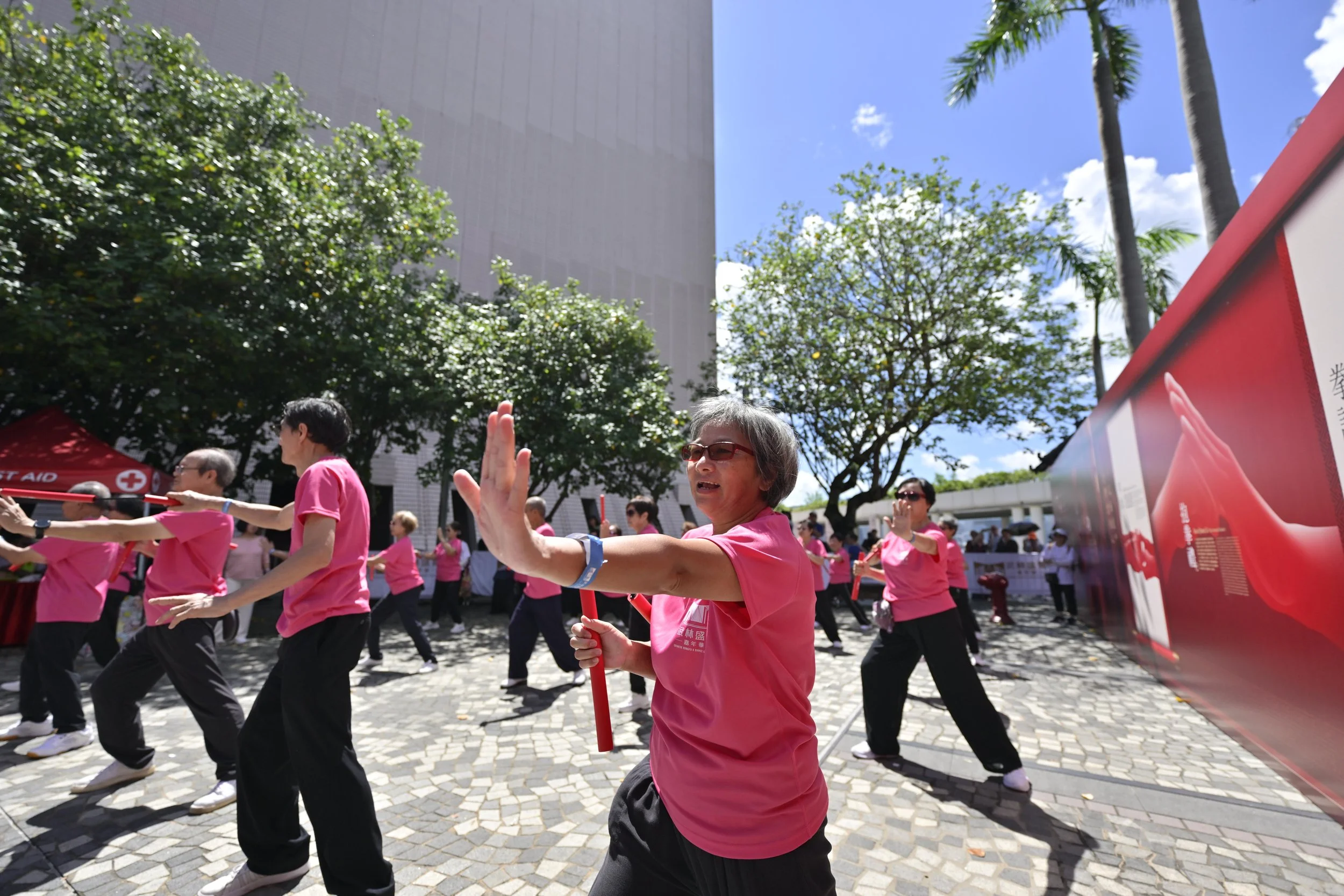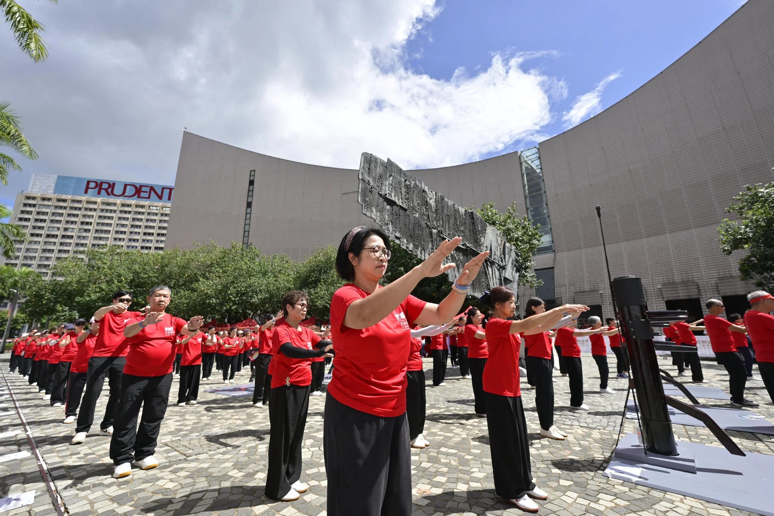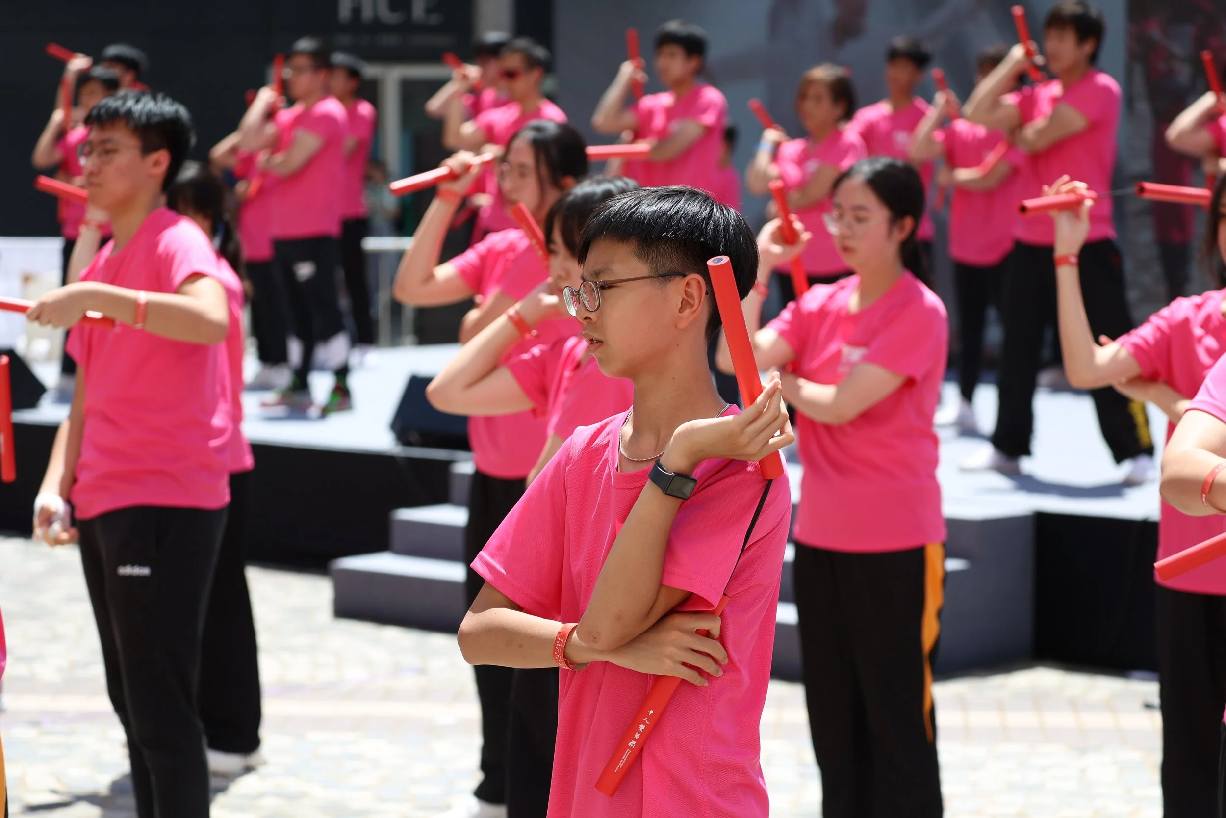 由香港青少年參與大匯演。雙節棍表演者來自共14個團體,包括少年警訊、耆老警訊、學校及武術體育會等。