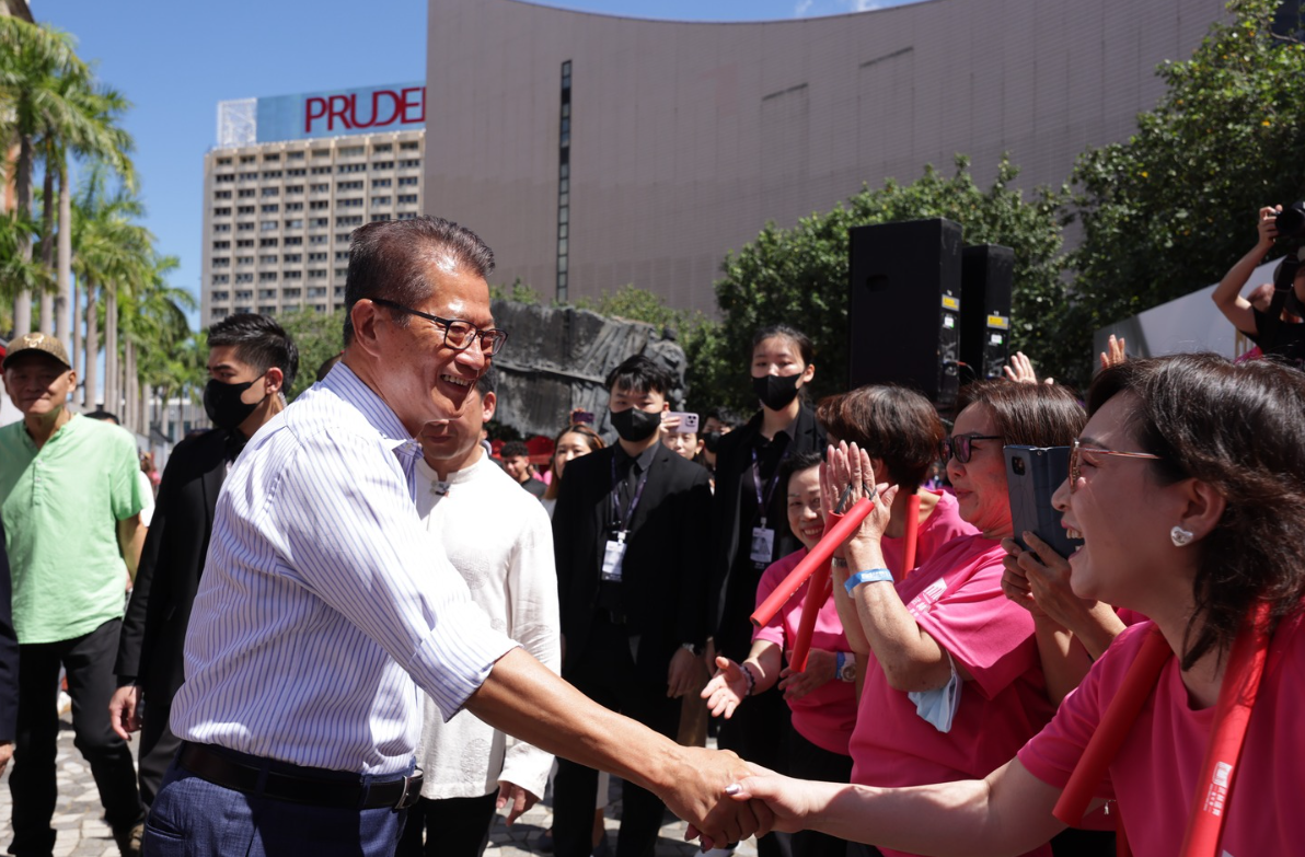 財政司司長 陳茂波先生與「千人雙截棍」表演者相談盛歡